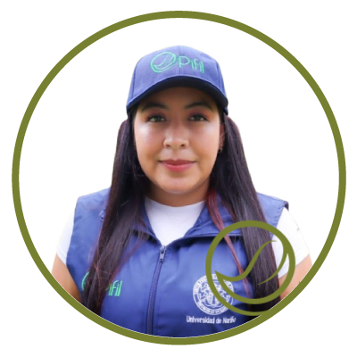 Estudiante del programa Ingeniería Agroforestal de la Universidad de Nariño, Tecnólogo en Producción Agrícola del Servicio Nacional de Aprendizaje. Vinculada al grupo de Investigación PIFIL (Plan de Investigación para Fortalecimiento Integral de las Comunidades) como pasante en la línea de especies promisorias y sistemas agroforestales.